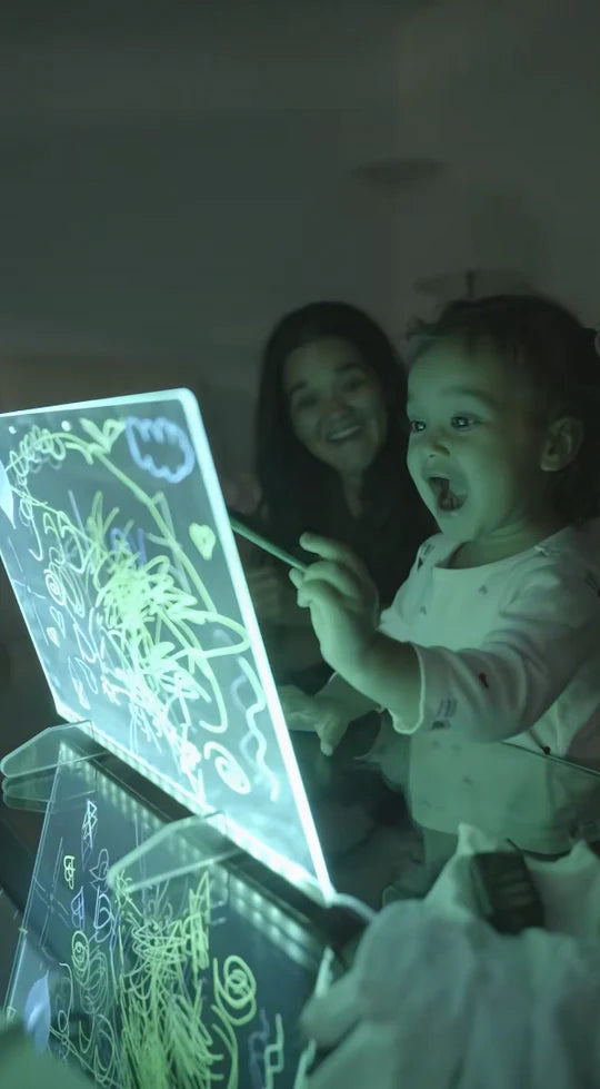 Kids can draw, write, and express ideas freely in a fun glowing way.